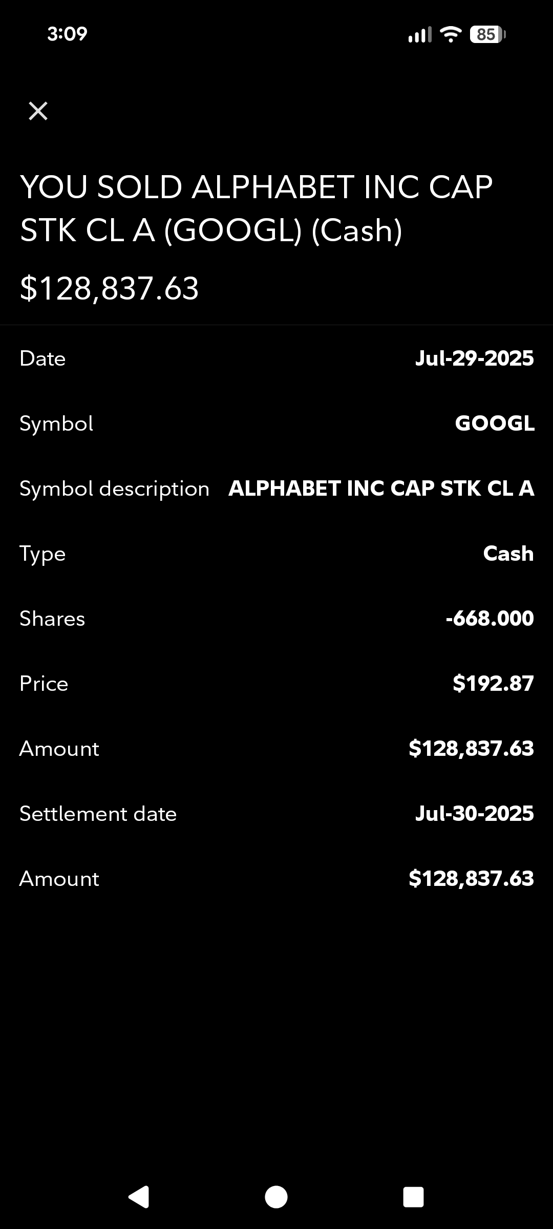 I sold Google at 192 and AMD at 163. If I held Google, my account balance would be 179k right now. If I held AMD, my account balance would have 193k right now. Never sell, boys and girls.
