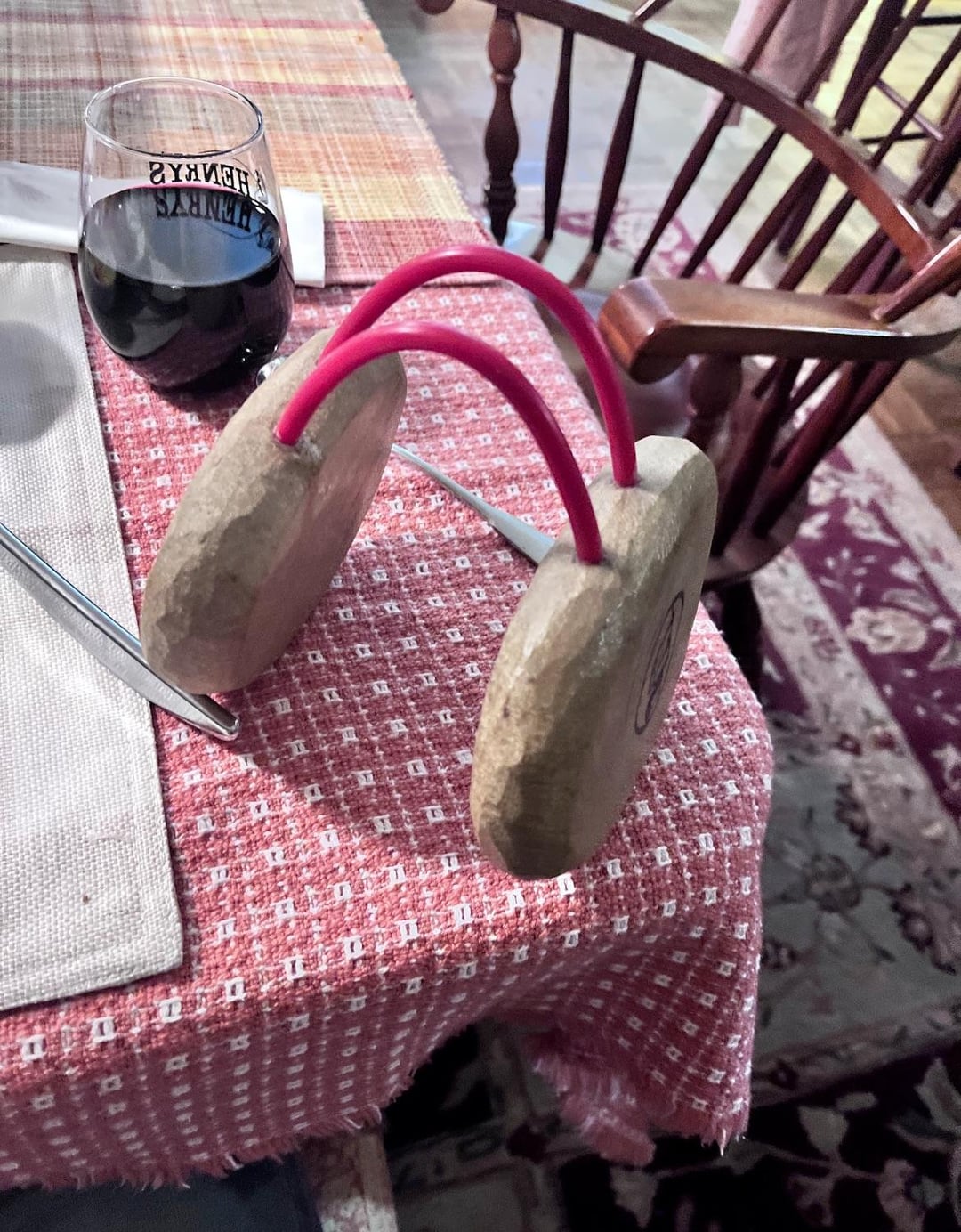 Found it at an old pawn shop. Owner had no clue what it was. The two stones are quite heavy and the red rods attaching them are somewhat malleable. There is also an interesting symbol on each of the stones, but I’m not sure what it is.