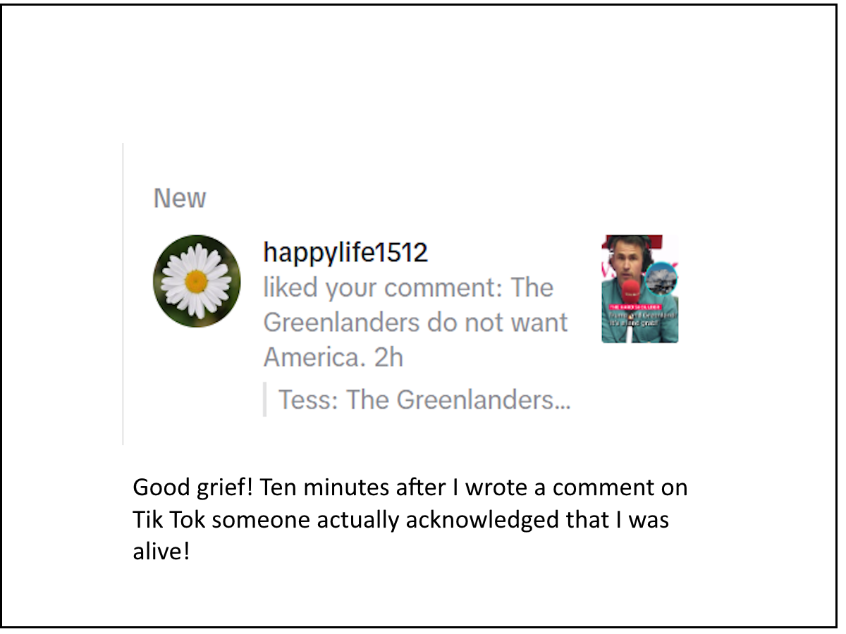In any event, I want to know the big picture, the international picture, the non-partisan picture. I want to know what is going on in a world of 8.4 billion people. And TikTok provides that.