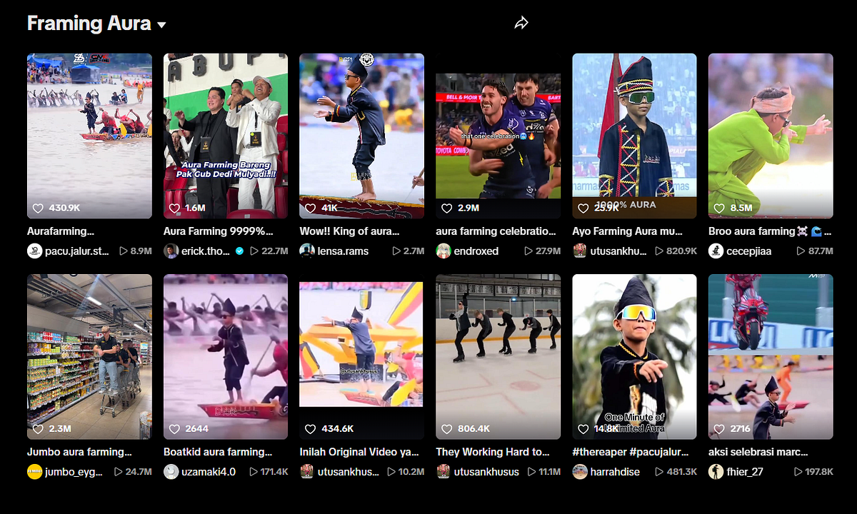 In the case of Pacu Jalur, the centuries-old canoe race from Riau, Indonesia, this trend found an unexpected home. One of the most iconic videos featured a dancer at the front of the boat — calm, poised, wearing sunglasses, barely moving yet deeply magnetic. That dancer, Rayyan Arkan Dikha, became the internet’s latest obsession and a perfect embodiment of the aura farming aesthetic.