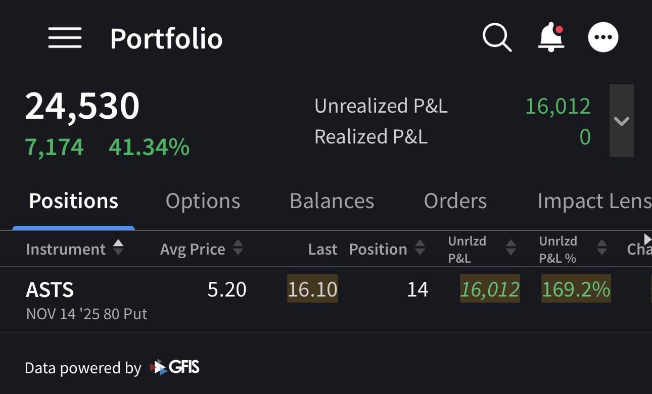 Positions: 14x ASTS Nov 14 80p @ 5.20
