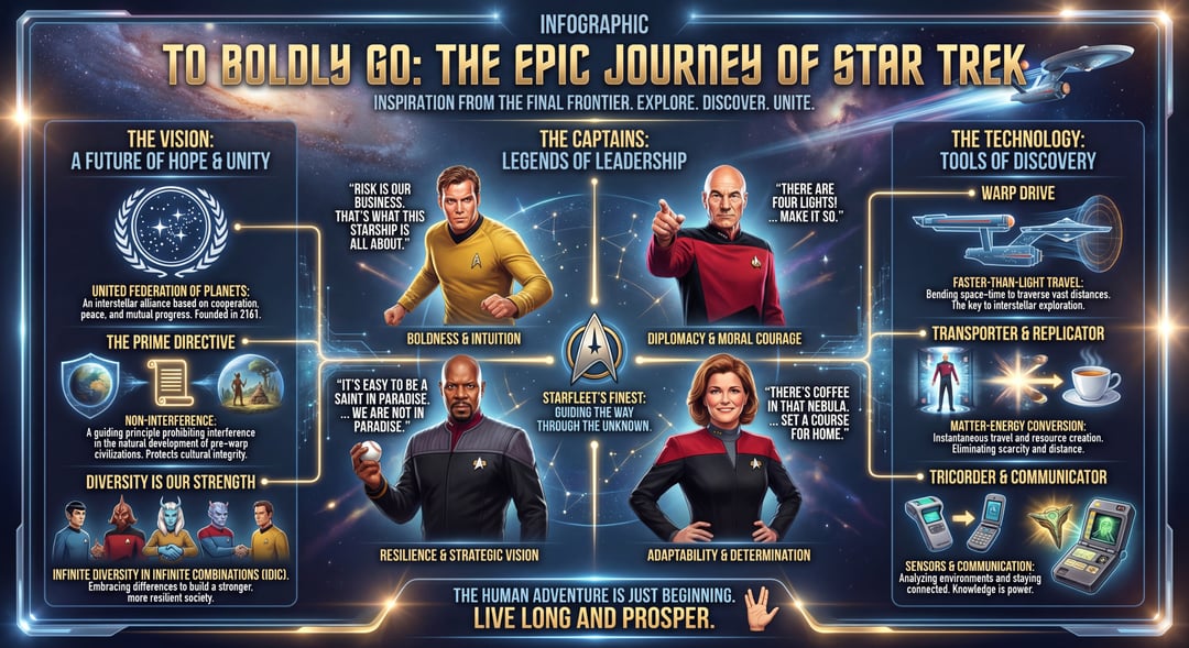 Create an epic, inspirational and cinematic infographic about Star Trek