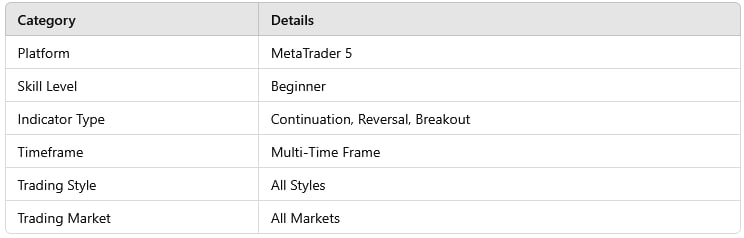 The Zone Indicator for MetaTrader 5 is a technical analysis tool designed to assist traders in identifying key support and resistance levels on price charts. By highlighting these zones, traders can better anticipate potential price reactions and make more informed trading decisions.